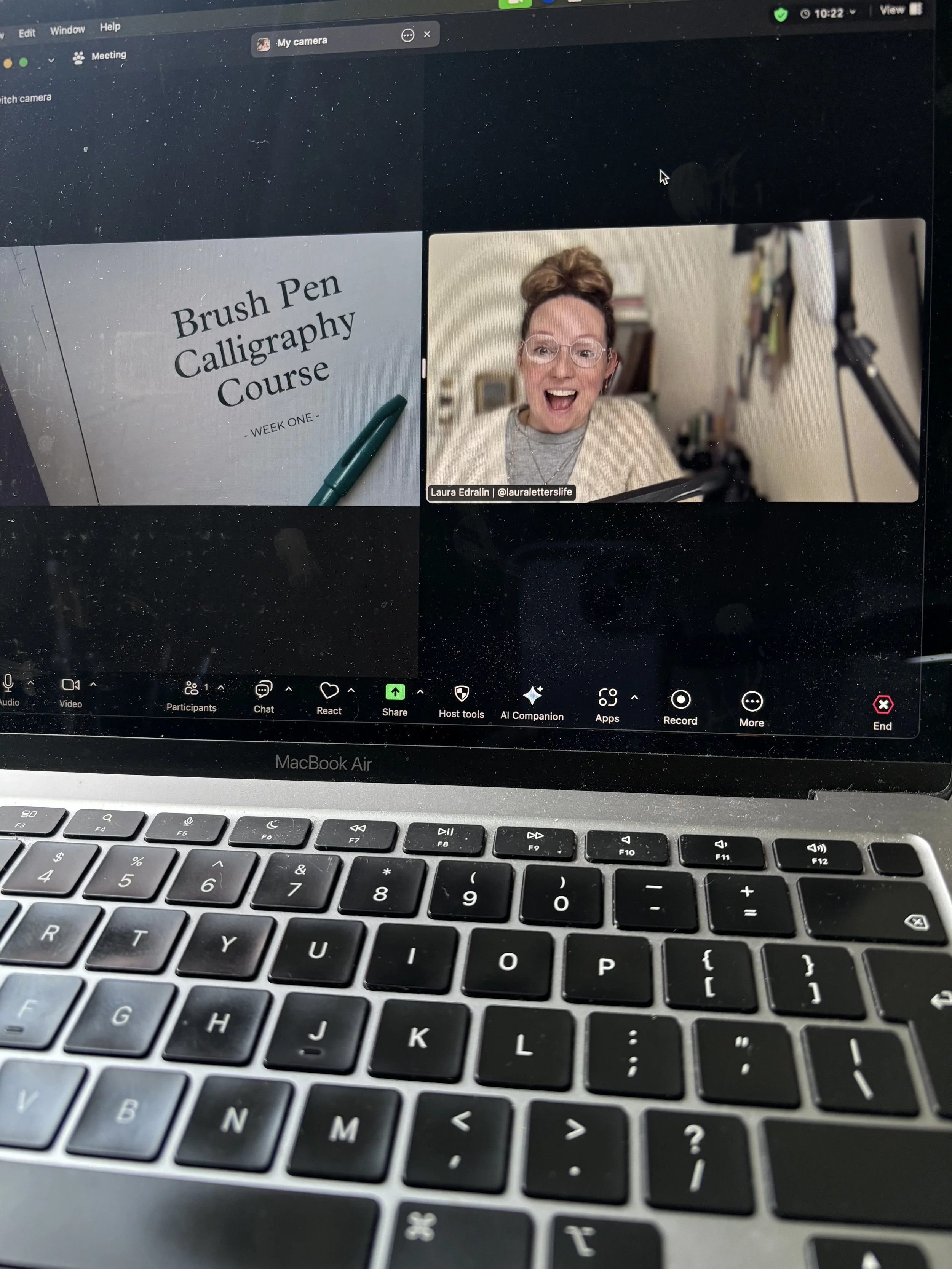 Join Laura Letters Life this October for a 4-week online Brush Pen Calligraphy course. Learn modern copperplate script with guided lessons, live feedback, and mindful practice that helps you slow down and create beautiful letters. Suitable for beginners and improvers, with replays and worksheets included.