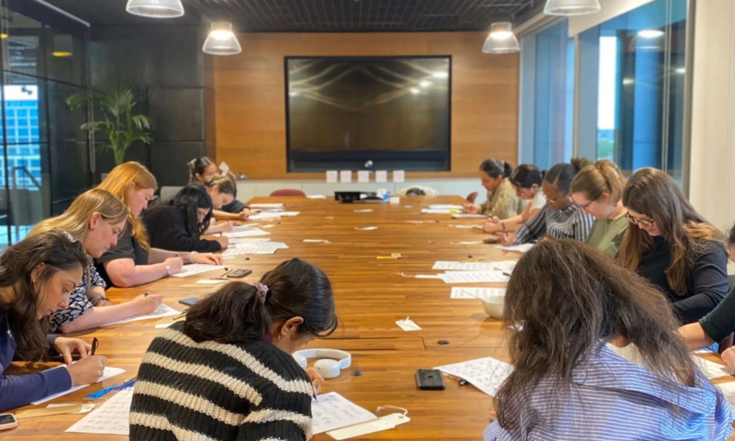 And that’s why I’ve created tailored workplace wellbeing workshops. Single-focused creative activities, like calligraphy, have a mindfulness effect drawing us out of our conscious head space (often rammed with the pressures of to-do lists and deadlines) and into a state of flow.